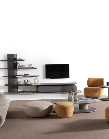 Terra TV Ünitesi, modern çizgileri doğal formlarla harmanlayarak sofistike bir atmosfer yaratıyor.