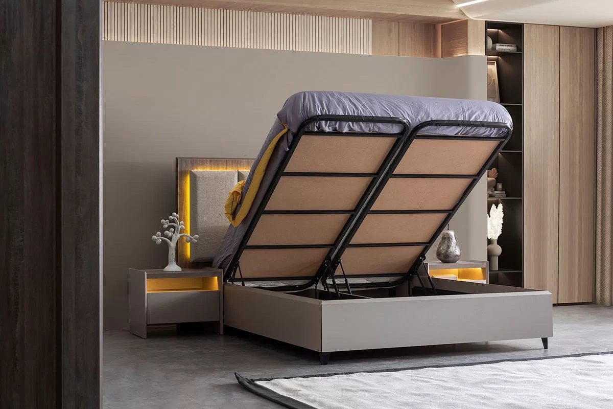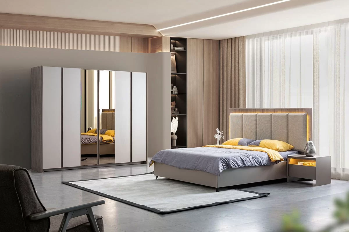 Luna Yatak Odası, modern çizgileri ve ışıklı başlığıyla zamansız bir şıklık katıyor.