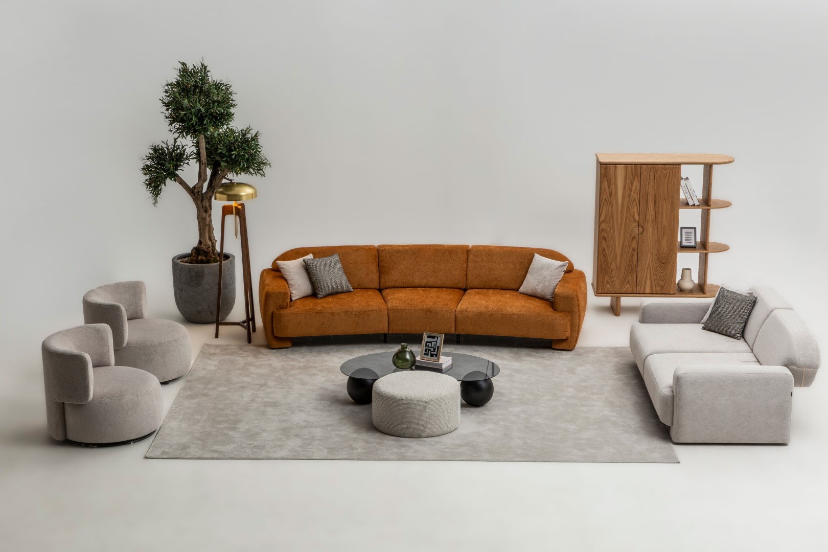 SONORA Koltuk Takımı, yuvarlak form dili ve farklı kumaş dokularıyla çağdaş bir rahatlık sunuyor. Sırt çizgisinden kol yapılarına kadar uzanan akıcı tasarımı, hem tekil hem takım olarak dengeli ve estetik bir görünüm sergiliyor.