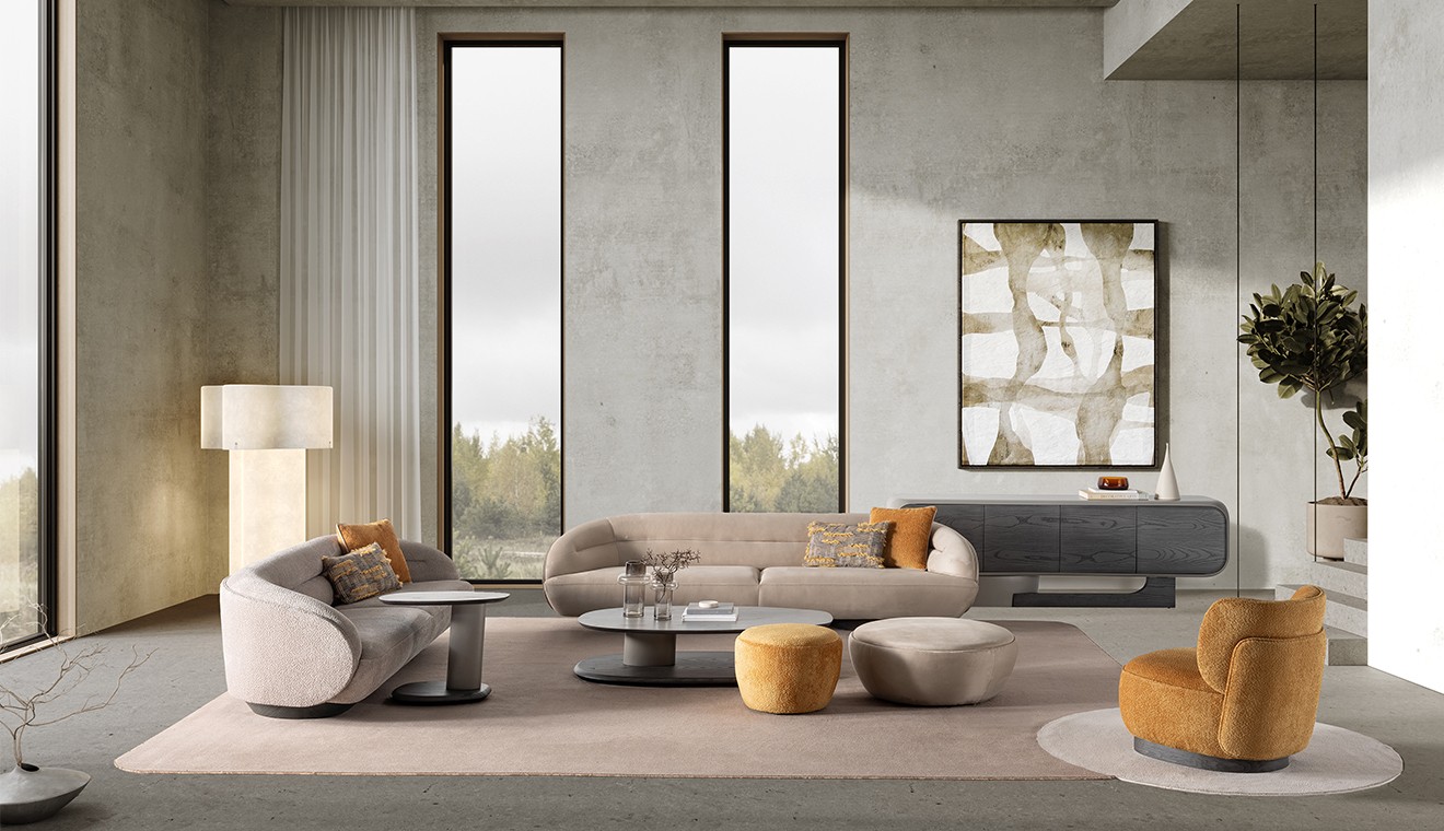 Terra Koltuk Takımı, kıvrımlı hatları ve yumuşak dokusuyla modern şıklığın tanımını yeniden yapıyor.
